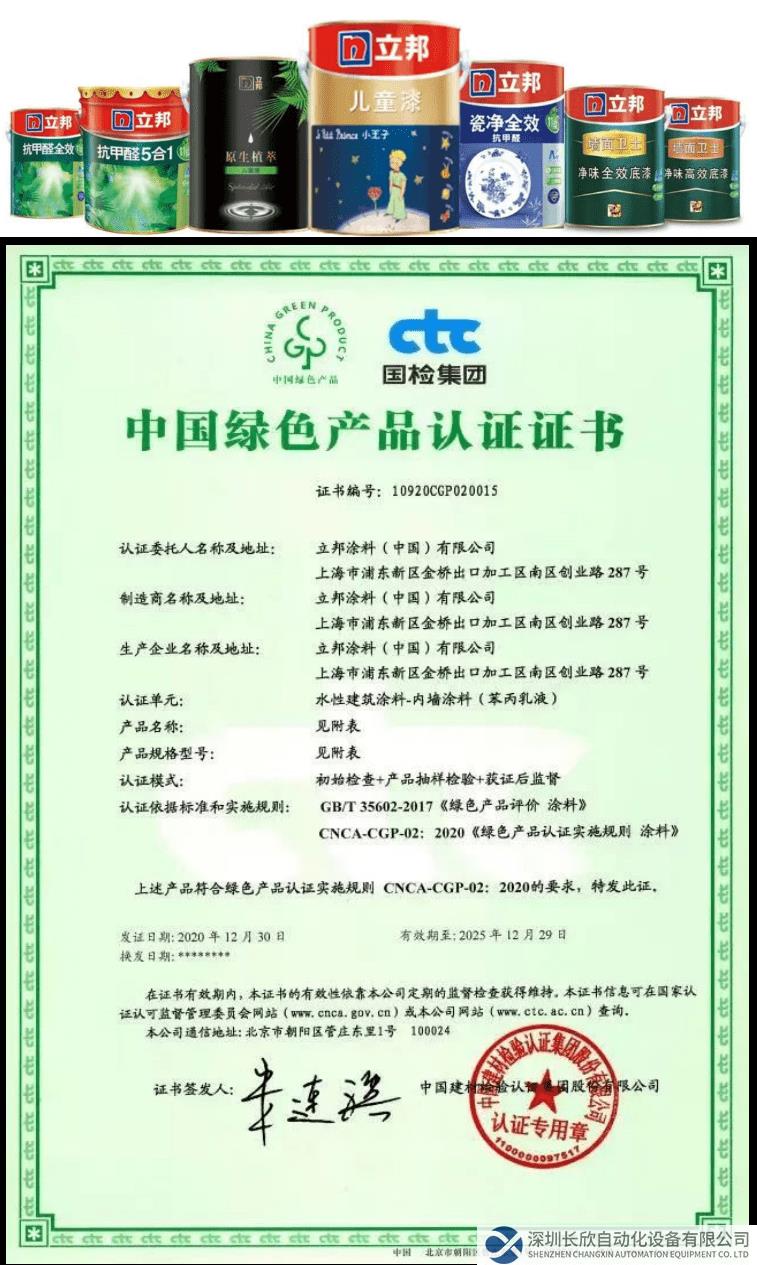 立邦中國旗下多款產(chǎn)品獲得了CTC(國檢集團(tuán))頒發(fā)的首批《中國綠色產(chǎn)品認(rèn)證》證書