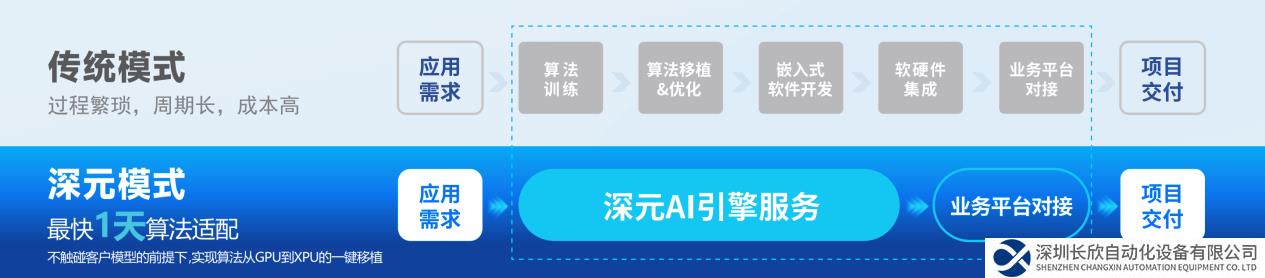 “深元”AI引擎的核心技術服務是0代碼移植服務,在不觸碰客戶模型文件的前提下,實現算法從GPU到XPU的一鍵移植,最快1天實現算法適配,高效、安全、低成本地賦能AI視覺應用落地。